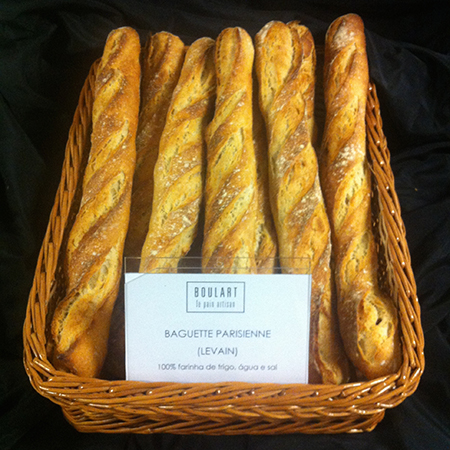 seguimos incondicionalmente as tradições artesanais na elaboração da nossa baguette. o resultado é um pão delicado de crosta fina e crocante, de cor dourada e, aromas de avelã e manteiga. o miolo é leve, aerado com aberturas irregulares. sua composição consiste em 100% farinha de trigo, água e sal.